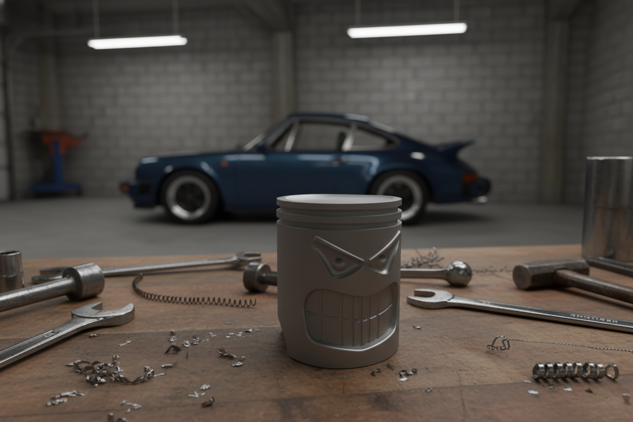 Angry Piston Head – Perfect Desktop & Garage Display for Car Lovers